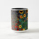 Café Mug apresentando o Jardim de Fazendas de pintura de óleo de Gustav Klimt com girassóis (1907). Um belo jardim de girassóis e belas flores azuis, vermelhas, roxas, rosa e brancas. Um presente de excelente para fãs de Arte Nouveau e de Arte Austríaca.