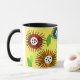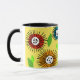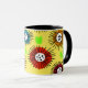 Esta caneca tem um design de flores minimalistas inspirado na Escandinávia em uma paleta colorida Flor Power dos anos 60.
