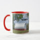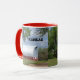 Uma fotografia de um barril vermelho do Kansas que está ao norte de Hutchinson Kansas USA que está no País. Isso é num MUG. É brilhante e colorido.