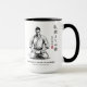 The hand-drawn illustration of a kneeling karateka in seiza reflects the quiet strength and discipline that lies at the heart of true martial arts. Above him, the original Japanese Kanji - 技術より心術 - conveys the same teaching in its authentic form, reminding practitioners that mastery begins in the mind before it is expressed through movement.