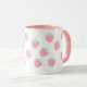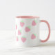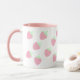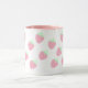Esta caneca branca e rosa kawaii é projetada com minúsculos morangos cor-de-rosa pastel em toda a caneca.
