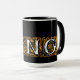 "Mágula de cerâmica Na moda negra com letras brancas arrojadas de 'KING', perfeita para um toque real no seu café ou chá."