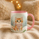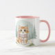 An absolutely charming mug featuring a gentle watercolor illustration of an orange striped kitten wearing a cozy scarf. This lovely design captures a moment of softness and warmth, and is perfect for cat lovers, children, or anyone who cherishes cozy moments with woodland creatures. This heartwarming mug belongs to the Woodland Friends collection, making it an ideal gift for birthdays or any occasion.