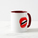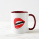 Ilustração simples de um par de lábios vermelhos prontos para beijar ou aprontar-se para conversar. Imagem disponível em vários presentes e produtos.