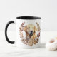 Uma bonito coroa de outono em tons de cinamão marrom, bronzeado e creme rodeia a imagem de um Cão Labrador Amarelo do Retriever. A imagem é impressa duas vezes na caneca, com seu texto personalizado entre eles.
