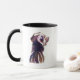 Uma caneca com um retrato silencioso e expressivo de um Labrador Retriever, capturado em tons suaves de aquarela e desenhado à mão pelo artista londrino Sebastian como parte de uma série contínua de retratos de cães.