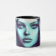 Esta caneca tem uma dama de desenho animado nela.