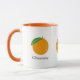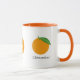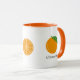 Uma caneca com ilustração de fruta laranja, uma fatia laranja e texto personalizável: presente perfeito para amantes de citros. Pode ser usado em casa, na escola ou no trabalho.