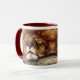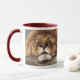 Um presente perfeito para amantes do gato grande e do leão: Uma pintura reproduzida do airbrush de leões de um sono dirige, descansando em um tronco de árvore. Arte animal maravilhosa que fará seu gosto do chá, do café ou do chocolate mesmo melhor e o iluminará acima de sua escritório ou cozinha.