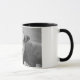 Caneca branca e preta, com fotografia a preto e branco (retrato) de uma vaca, fotografada na Irlanda, County Clare.