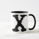 A letra X em uma fonte digitada granulada. Design preto e branco.