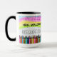 A caneca temerária da escola personalizada com o nome e a classe do professor, o nome e o título da faculdade, ou o nome da escola com habilitações escolares coloridas de ambos os lados. Teste esta design inserindo suas informações para ver como ela está! Se precisar redimensionar o texto, clique em 'personalizar' para inserir a 'ferramenta design'.