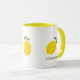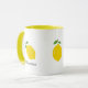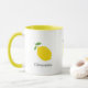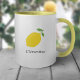 Uma caneca com ilustração de limão amarelo e texto personalizável: presente perfeito para amantes de citros. Pode ser usado em casa, na escola ou no trabalho.