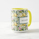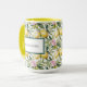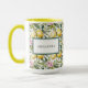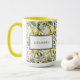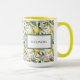 Uma lama do estilo mediterrânico elegante que apresenta um padrão aquoso fresco de limões beijados ao sol, flores cor-de-rosa e folhas verdes e peludas sobre um fundo branco nítido. O design inclui uma etiqueta de enquadramento sofisticada personalizada com o seu nome, fazer-a como na moda e escolha prática. Perfeito para amantes de charme italiano, vibes da costa Amalfi, e designs de citros florais, esta caneca é uma peça de papelaria funcional e um belo acessório.
