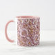 Um padrão floral vibrante apresenta grandes flores cor-de-rosa empoeiradas contra folhas delicadas. Cada flor apresenta pétalas detalhadas e um centro rico e ornamentado, criando um sentido de profundidade e movimento