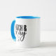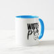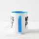 O belo interior azul e a maçaneta fazem com que esta caneca se sobressaia dos outros. Brilhe seu dia com essa cor maravilhosa. A design dupla face é perfeita para pessoas canhotas e destras.