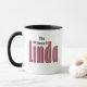 Esta elegante e moderna trabalho de arte mostra o nome "Linda" em rosa escuro, framboesa e preto, juntamente com um campo de tipografia personalizável que atualmente lê "O Excelente!" para sobrenome ou outra personalização. Personalize esta caneca de nome único ou compre-a como está — é um presente pensativo e estimulante para qualquer mulher chamada "Linda", seja ela membro da família, mãe, filha, avó, professor, vizinho, amigo, enfermeiro ou qualquer pessoa especial em sua vida. Para solicitações ou perguntas especiais, entre em contato com o artista em wafadahdalcreates@gmail.com. © Wafa Y. Dahdal - Todos os direitos reservados. WD Art