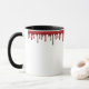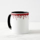 Esta xícara de café gótica está pingando com sangue em um fundo branco © Desejos do Coração Escuro.