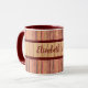 Esta caneca apresenta uma coleção de painéis de madeira rústica com uma tonalidade terrosa rosa-marrom. Você pode adicionar seu nome, iniciais ou mensagem aqui.