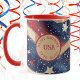 Esta caneca personalizável é uma opção fantástica para personalizar sua celebração! Você pode adicionar qualquer nome e personalizar o intervalo de datas de 1776-2026, junto com a frase "Feliz Aniversário EUA", ou modificá-la de acordo com sua preferência. Isso torna a caneca um favor de festa ideal para os convidados em vários eventos, desde festas de aniversário com tema Corporativo até Vermelho, Branco e Dourado, jantares de churrasco, celebrações do Dia 4 de Julho, Dia dos Veteranos, reuniões familiares, Dia Nacional do Chefe e festividades do dia da eleição. O design apresenta cores americanas proeminentes - vermelho, branco, azul e dourado - dispostas em listras e estrelas elegantes, adicionando um toque festivo a qualquer ocasião.