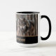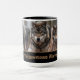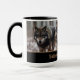 Esta caneca de café cerâmica é mostrada com uma impressão de foto de lobos selvagens no Parque Nacional de Yellowstone. Acentos bronzeados com interior preto e alça. Personalize este item ou comprar como está. Imagem do stock