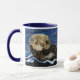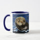 Uma pintura de uma natação da lontra de mar em sua parte traseira.