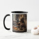 Dans cette cuisine ancienne, la lumière douce traverse une fenêtre en bois, apportant une atmosphère apaisante. On sent presque l’odeur sucrée du miel et des fruits frais. L'ours, concentré, semble adorer la préparation maison qu’il concocte avec passion. Un moment unique, plein de douceur et d’authenticité.