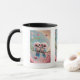 Dois adoráveis filhotes de desenho animado tocados em um galho cercado por corações vibrantes, vermelhos e rosa. O pano de fundo apresenta tons suaves de cor rosa e azul-céu, criando uma vibração caprichosa e alegre, perfeita para os presentes do Namorados romântico e lúdico.