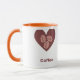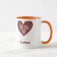 This stylish mug features a heart-shaped design filled with coffee beans and the word “Coffee” below.