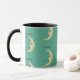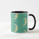 Apresenta uma ilustração antiga de uma lua crescente com um rosto. Feito em amarelo claro e colocado sobre um fundo turquesa. Um design de vintage encantador.