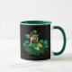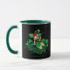 Fada irlandesa de cabelos vermelhos, toda de verde para a Rua. Dia de Patrick com seu pinto de ouro e trevos verdes.