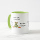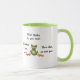 Uma caneca de duas tonalidades (verde e branco) com sapos bonitinhos elogiando o quanto o café e o bebedor estão quentes. Perfeito como presente de aniversário ou presente de Dia de os namorados para alguém especial. Todo texto é personalizável.