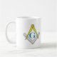 Está aqui uma caneca agradável, básica com um design do quadrado-e-compasso da cheio-cor. Este emblema é um dos símbolos os mais reconhecidos da maçonaria. Mostre seu orgulho como um membro usando esta caneca colorida para toda a bebida favorita!