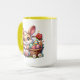 Coelhinho da Páscoa bonito sentado ao lado de um cheio de cesto de coelho de desenho animado de ovos de Páscoa tingidos. Esta caneca diz a mãe, mas você pode personalizar para dizer qualquer nome ou membro da família.