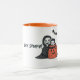 Esta personalizável design de caneca do "Dia das Bruxas" apresenta uma mãe assustadora e seu filho com texto personalizado.