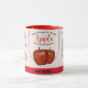 Mãe retro World Class Apple Love Jam Coffee Mug. Mão trabalhada com maçã empanada com etiqueta de amor da mãe. O presente perfeito para o Dia da Mãe ou Aniversário. A design contém fatos nutricionais, informação sobre alergia e mãe humilde como citações.