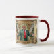 Trump é pintado vestindo asas de anjo de Natal — ou são asas de águia? - nesta luxuosamente elegante caneca de Natal. O texto diz "Tenha um Natal magnífico".
