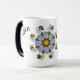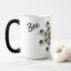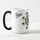 A mensagem de script de verso mágico de abelhas é exibida quando a caneca fica quente. design de mandala roxo de fundo, apresentando a abelha a Buzz, em um padrão repetitivo. A caneca morphing é mágica!! É minha caneca favorita para design. design gráfico original.