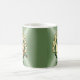 This mug features an avocado character playing a violin in the center of the image. The avocado has an avocado shape with big white eyes, rosy cheeks and a gentle smile. Around the main avocado character are multiple smaller avocado slices each with simple cartoon faces showing various expressions of joy and happiness. The background is a solid green color with a bright white light beam effect coming from the top, creating a spotlight-like glow. Musical notes and heart symbols float around the avocado characters. The main avocado character is holding a brown violin. The mug is a Morphing Mug. The avocado image is on both sides of the mug. The mug shows the image when you put a hot drink in it.