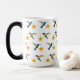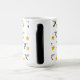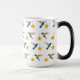 Caneca branca com um padrão de beija-flores largas e um beija-flores largas com ornamentos estelares.
