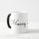 Apenas uma caneca preta lisa em suas mãos até que você derramar seu chocolate quente dentro. Maneira bonito de propr.