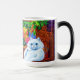 Magic Mug, com a pintura animal de Louis Wain Master of Cat College (1860-1939). Um gato branco pensativo com olhos azuis impressionantes senta-se pesadamente ao lado de uma variedade vibrante de flores bonitas. A majestosa faculdade de gatos venta no fundo sob um céu rosa e azul. Um presente maravilhoso para amantes de gatos e arte inglesa.