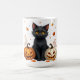 Sip in spooky-cute style with this Black Cat & Pumpkins Halloween Mug. Featuring an adorable black cat paired with two pumpkins, this design brings cozy fall vibes to every coffee, tea, or cocoa break.