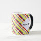A caneca mágica apresenta uma bandeira colombiana com a palavra COLOMBIA abaixo, nas cores da bandeira com uma borda preta. Um fractal branco de quadrados rabugentos tem um lugar para o seu nome. Use-o para criar um presente personalizado ou um olhar personalizado para si mesmo. A bandeira é amarela, azul e vermelha com a metade superior em amarelo e a metade inferior compartilhando as listras azul e vermelha.