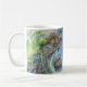 Tentativa que diz que 5 vezes jejuam! Caneca cerâmica que caracteriza "uma reunião mágica" entre um golfinho e um unicórnio, como descrito pela parede de Jo.