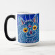 Mágica Mug com o animal de Louis Wain pintando um gato em estilo gótico (1860-1939). Um gato azul psíquico olha amigavelmente com os olhos amarelos para o espectador. Um presente maravilhoso para amantes de gatos e arte inglesa.