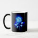 Rosa de abstrato a, sangrando a partir da chama azul sobre fundo preto. Rosa de incêndio.