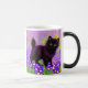 Magic Mug com um gatinho preto Gustav Klimt! Esta beleza de olhos largos se coloca num campo verde de flores roxas. Um presente pensativo para amantes de gatos e entusiastas de arte austríacos!