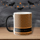 Engraçada caneca de café do professor de Halloween preto e laranja.