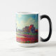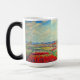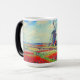 Magic Mug com a pintura de Claude Monet em flores e moinhos de vento. Lindos e coloridos campos de tulipas vermelhas, cor-de-rosa e amarelas ao lado de um moinho de vento e casa na Holanda. Um presente de Monet excelente para fãs do impressionismo e da arte francesa.